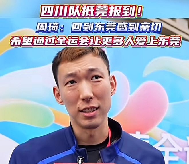 2025年全运会,周琦代表四川队参加比赛,随着比赛日期越来越近,周琦和四川队也是来到了篮球举办城市东莞。