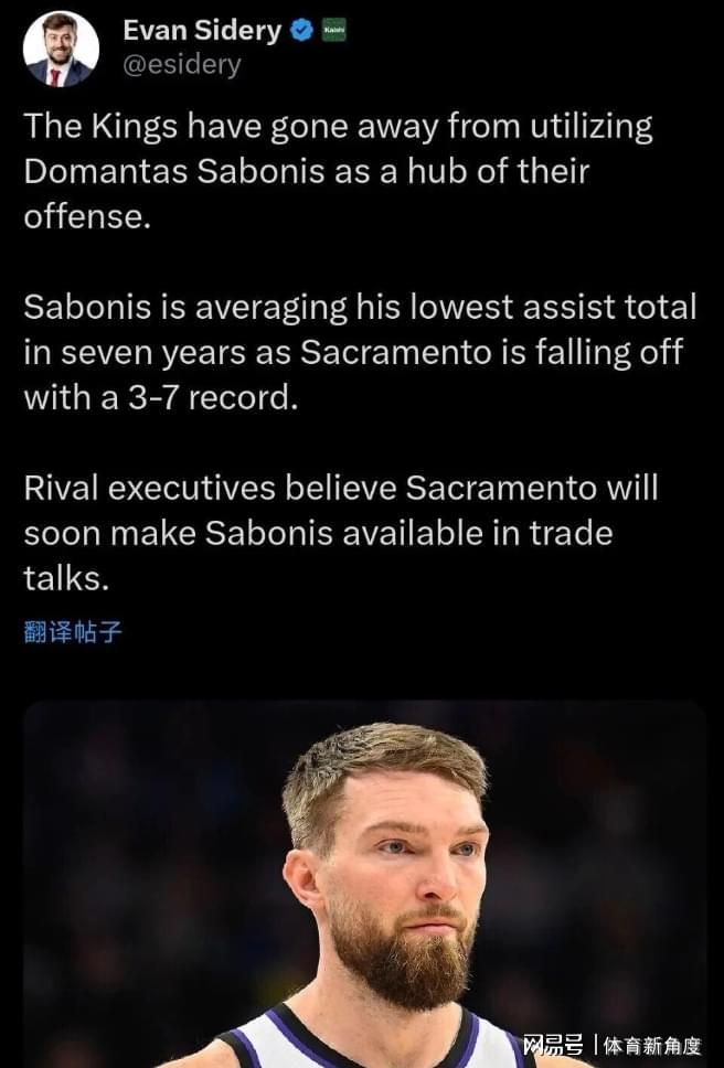 据可靠消息透露,有惊人交易动态浮出水面——知名记者Sidery披露,萨克拉门托国王队极有可能在短期内将萨博尼斯列入交易名单。萨博尼斯,这位诞生于1996年5月3日的篮球健将,以2米08的身高傲立内线,是2016年首轮第11顺位被选中的新星。职业生涯中,他三度荣膺全明星殊荣,三次摘得篮板王桂冠,两次入选最佳阵容第三阵容,尤其是在2023-2024赛季,他以场均19.4分、13.7个篮板和8.2次助攻的全面表现,彰显了其非凡实力。